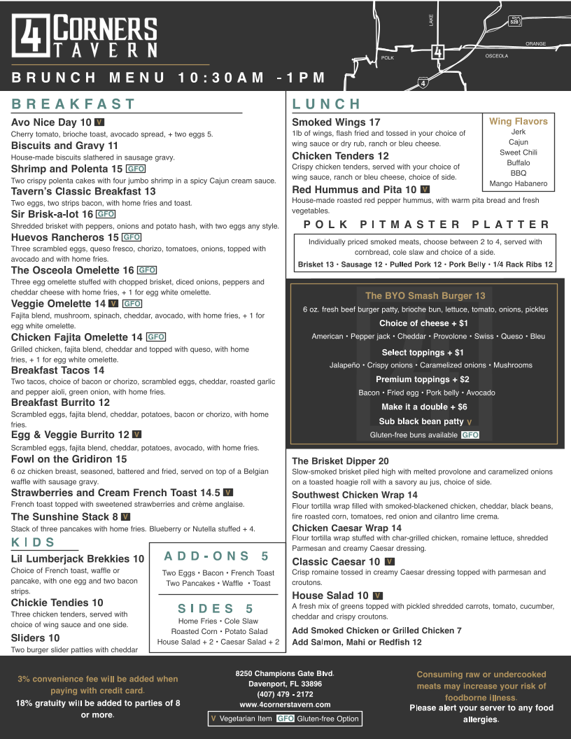 Sauces: buffalo, jerk, cajun, sweet chili, BBQ, mango habanero, potato wedges or slaw.