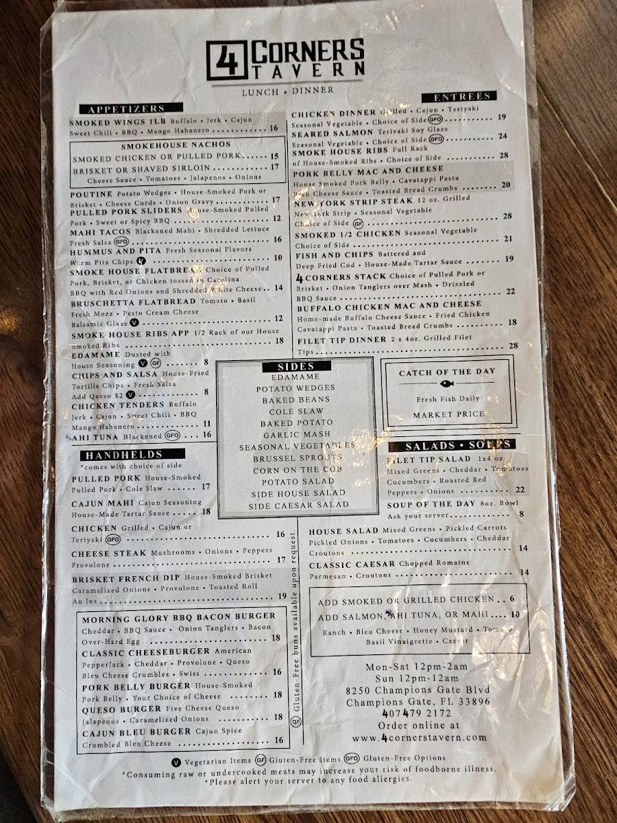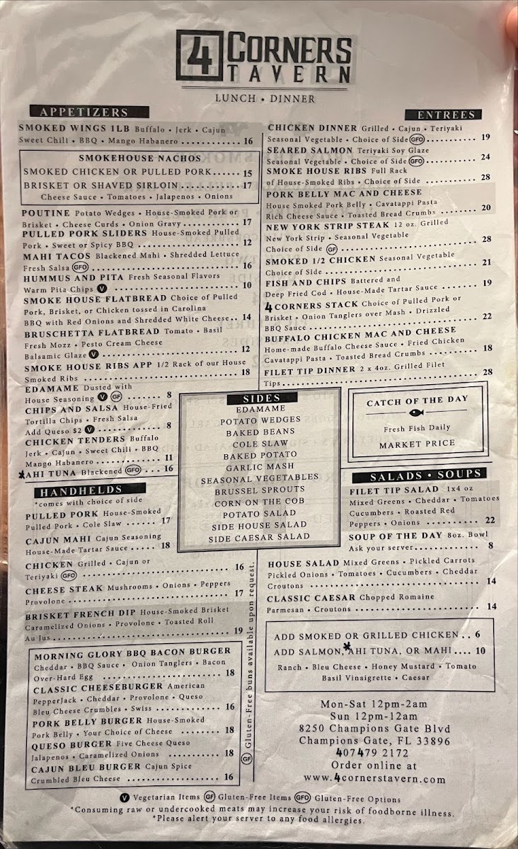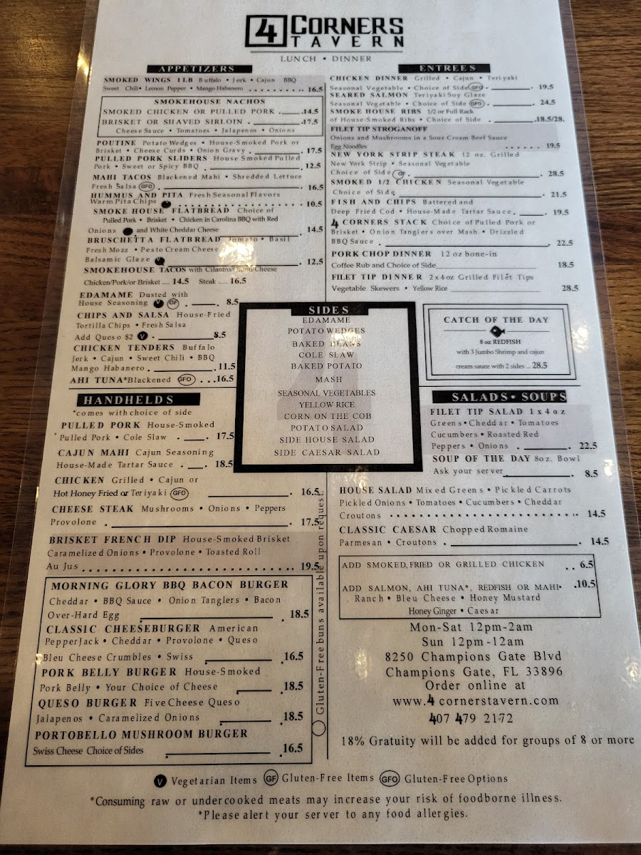 Gluten free option. Grilled, cajun, or teriyaki, seasonal vegetable, choice of side. Add $2 for premium side